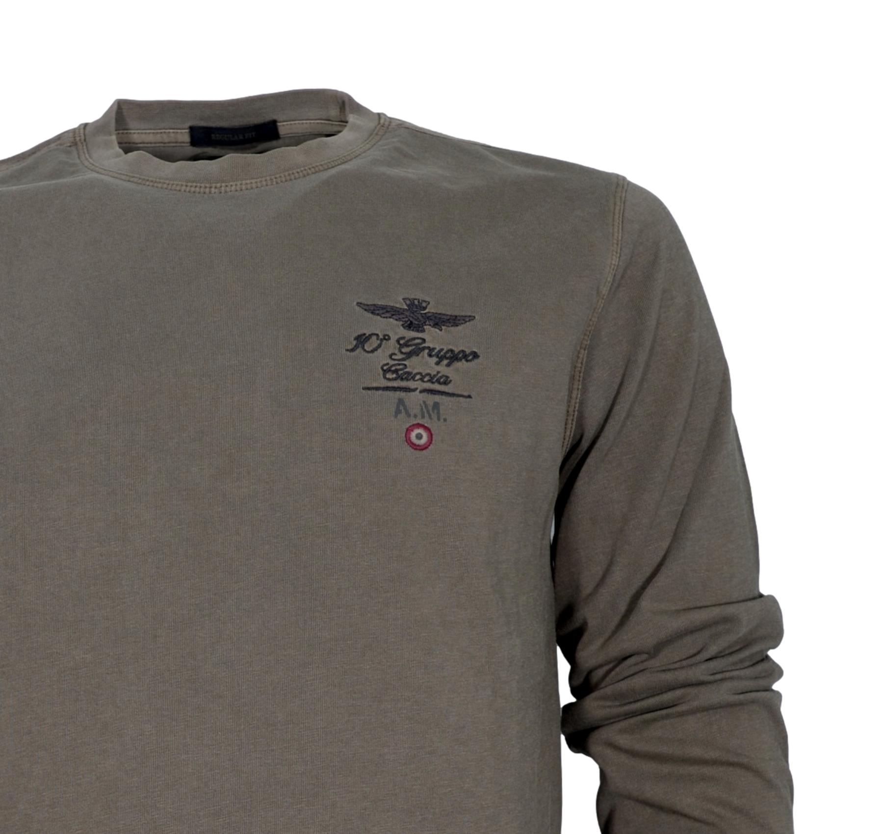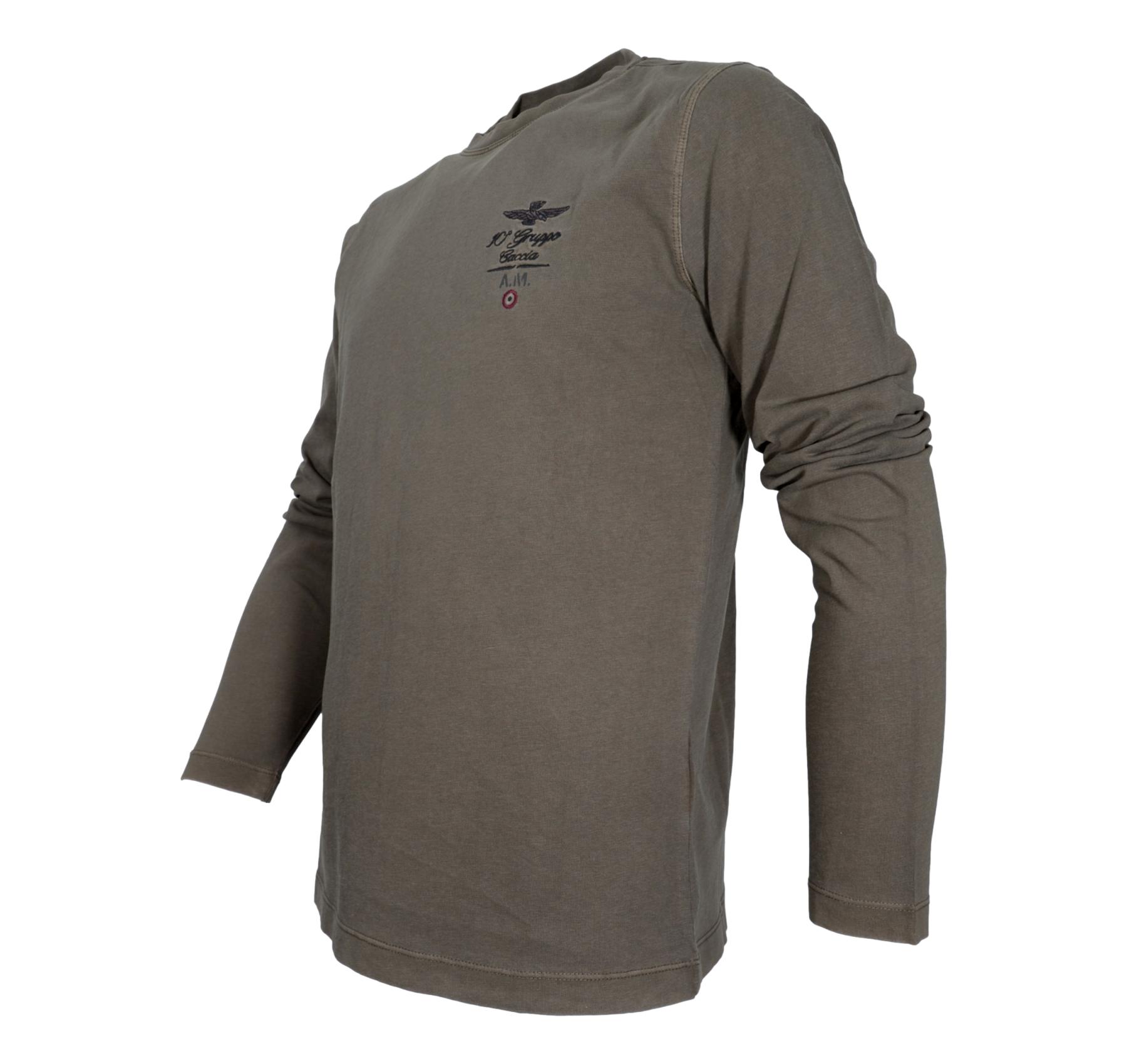 Versatile maglia girocollo in puro cotone caratterizzata da una vestibilità regolare e da un discreto ricamo dell'iconica aquila turrita. Ispirata alla figura del capo equipaggio, si distingue per dettagli caratteristici come la patch riflettente che rende omaggio al 36° Stormo. Un modello essenziale perfetto per rinnovare il tuo guardaroba con un tocco casual e classico.
