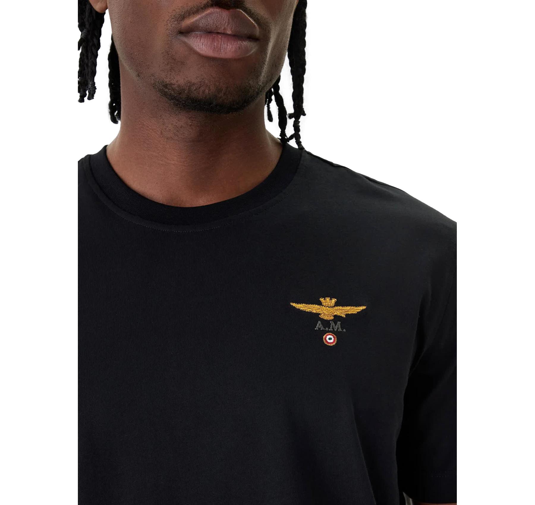 Realizzata in puro jersey di cotone, offre morbidezza, traspirabilità e comfort quotidiano. Il ricamo dell’aquila turrita sul petto, simbolo autentico del brand, dona carattere e riconoscibilità a un modello minimal ma distintivo.