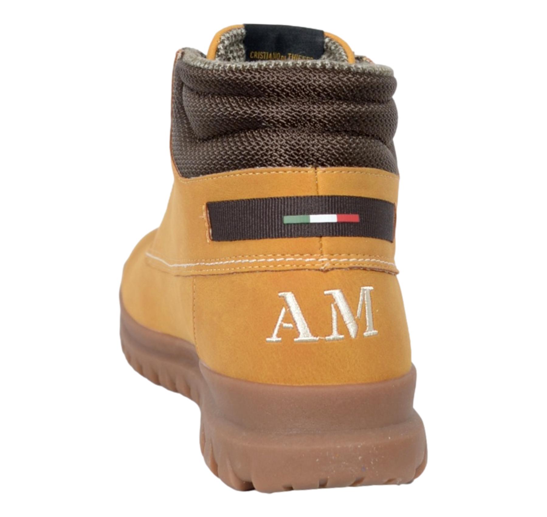 Il design è impreziosito dall’inconfondibile aquila turrita in metallo e dalle iniziali AM sul tallone, simboli di originalità e appartenenza allo spirito del brand.