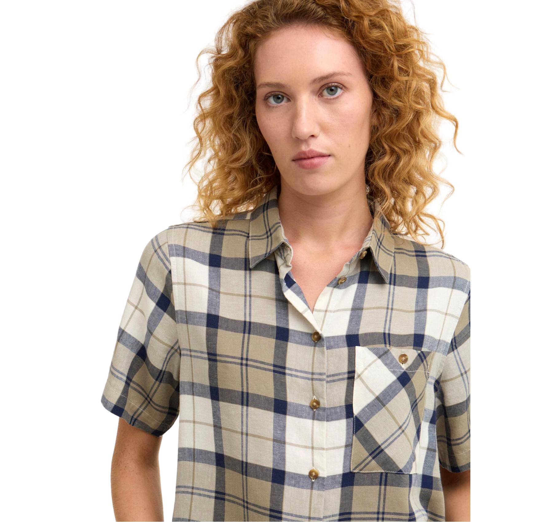 La camicia BARBOUR Fern a maniche corte è un capo estivo dal carattere disinvolto che celebra l’heritage iconico del brand. Proposta in tartan Fern di stagione, si distingue per una vestibilità comoda, ideale per affrontare i mesi più caldi con stile e leggerezza. Il carré, i polsini e la tasca sul petto tagliati in sbieco creano un raffinato gioco di contrasti e un leggero effetto testurizzato. Sul retro del collo è applicata una sottile barretta identificativa in metallo, dettaglio elegante che impreziosisce il design. Completano il capo i bottoni con logo Barbour, espressione di cura sartoriale e qualità costruttiva.