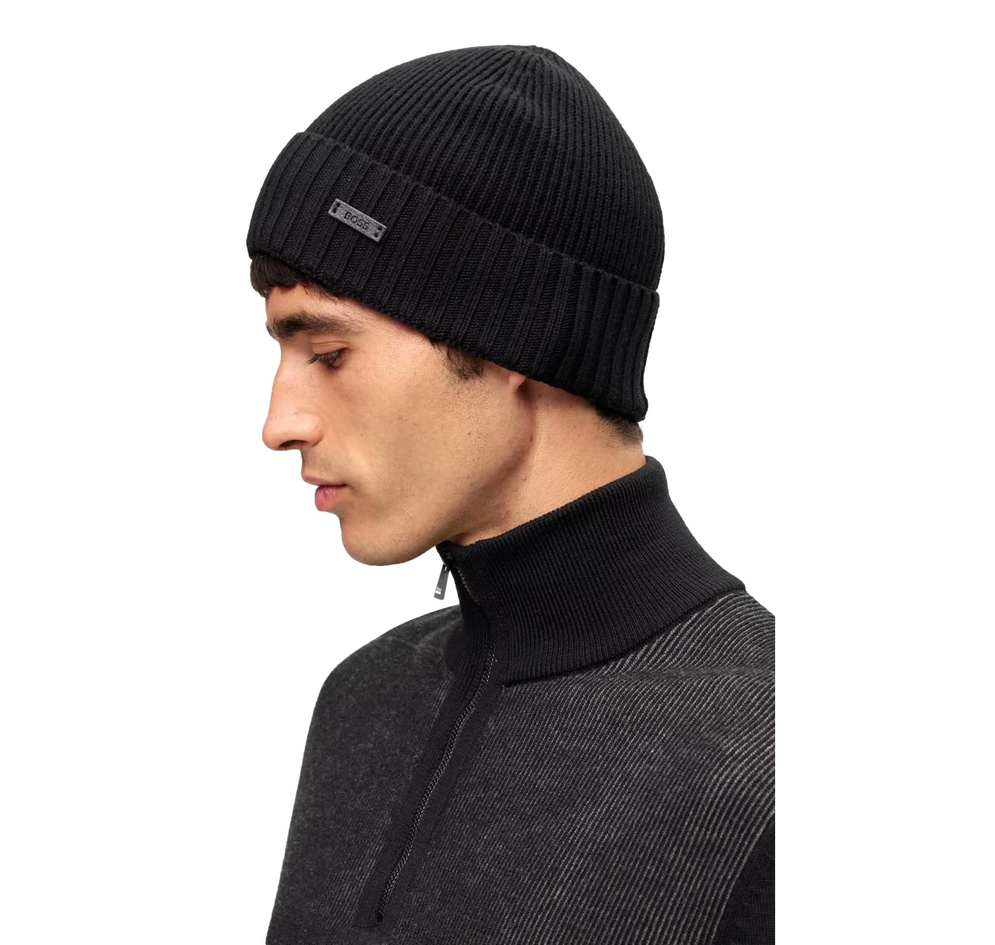 Un caldo berretto BOSS con lavorazione a coste all-over e targhetta con logo in similpelle. Per i nostri prodotti RESPONSIBLE usiamo sempre almeno il 60% di materie prime più sostenibili. Questo capo è realizzato con lana certificata e proveniente da allevamenti responsabili. Per noi, essere un allevamento responsabile significa essere mulesing-free e rispettare gli standard previsti dalle Cinque libertà per la tutela degli animali.