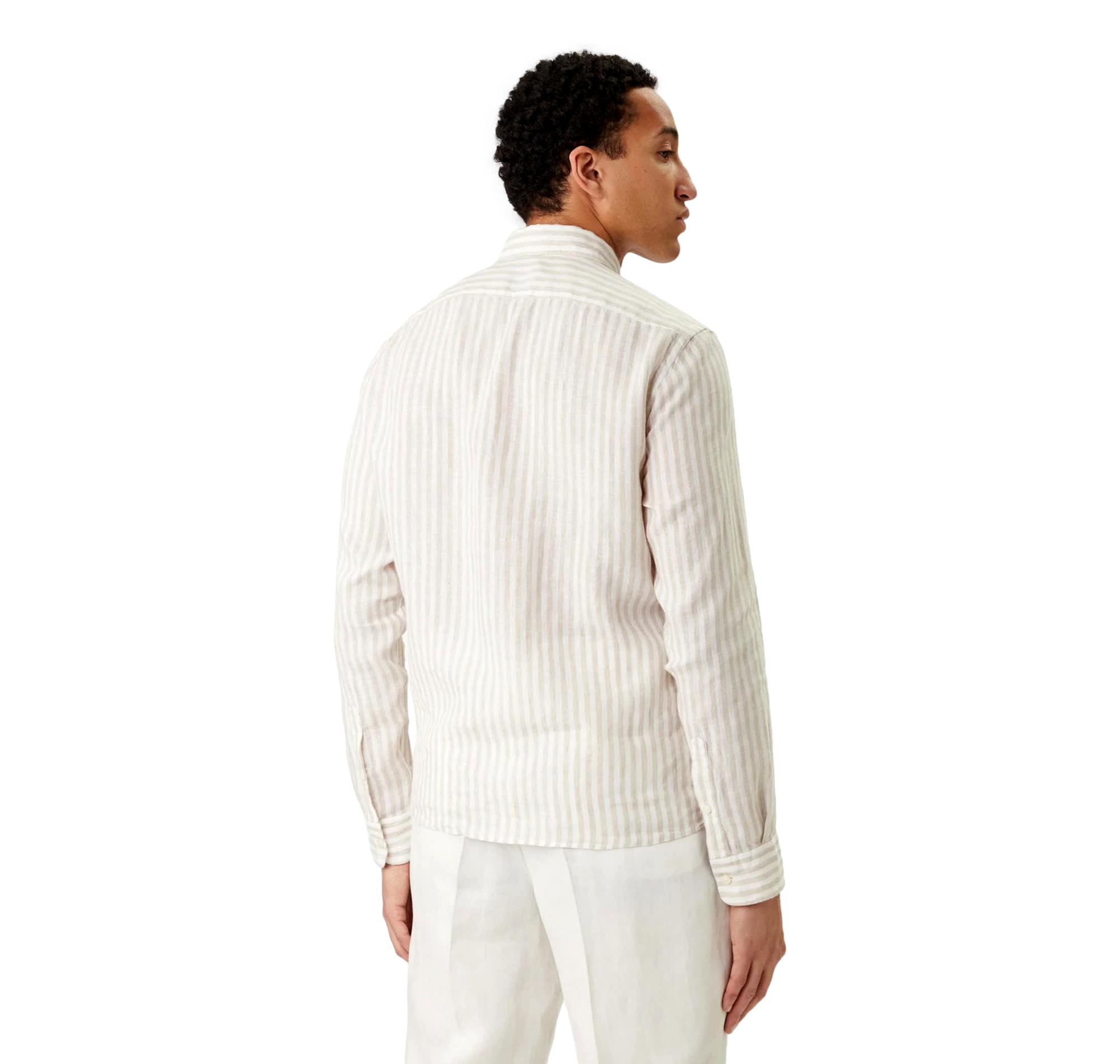 Realizzata in 100% lino naturale, garantisce traspirabilità e leggerezza anche nelle giornate più calde. Il design con righe audaci dona carattere al capo, mentre il colletto button-down e la vestibilità regular fit assicurano uno stile versatile, ideale sia per outfit casual che smart casual.