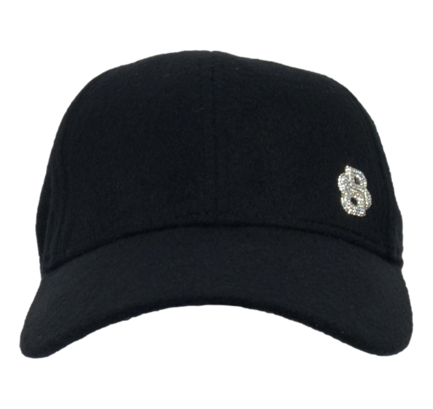 Cappello da donna BOSS in elegante tessuto nero effetto peloso, caratterizzato da un design classico con visiera curva. Impreziosito da un'applicazione con iniziale "B" in strass sul pannello frontale, unisce stile sofisticato e dettagli raffinati. Ideale per completare look casual-chic con un tocco distintivo e morbido.