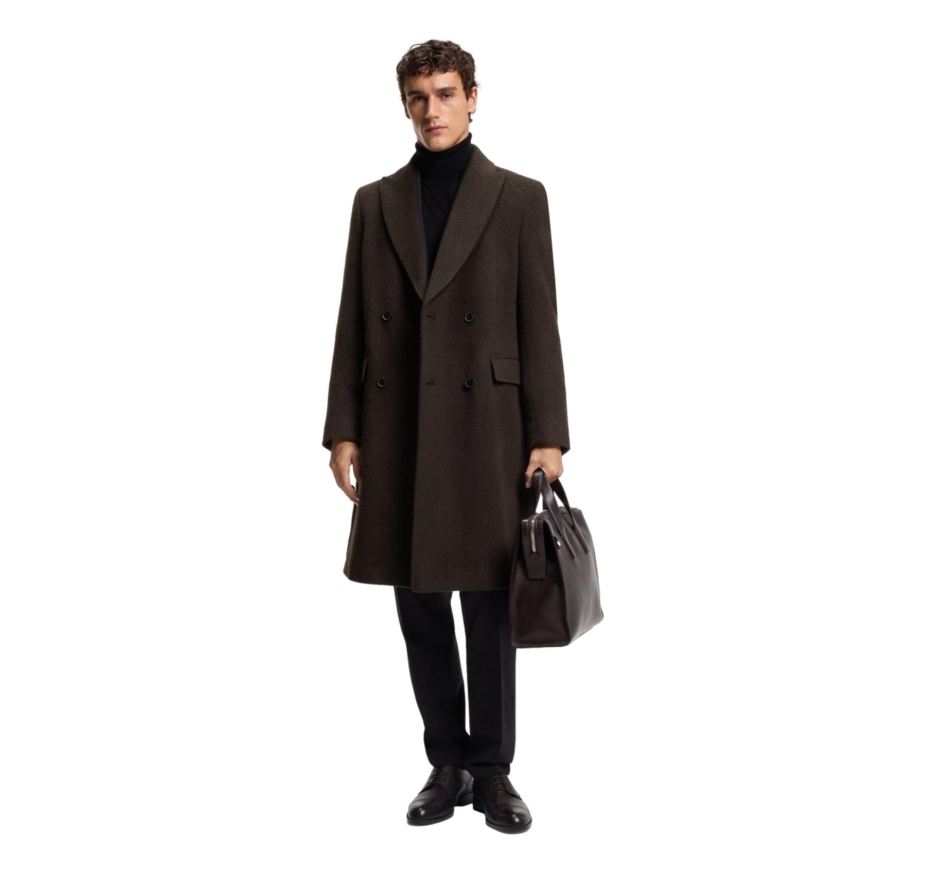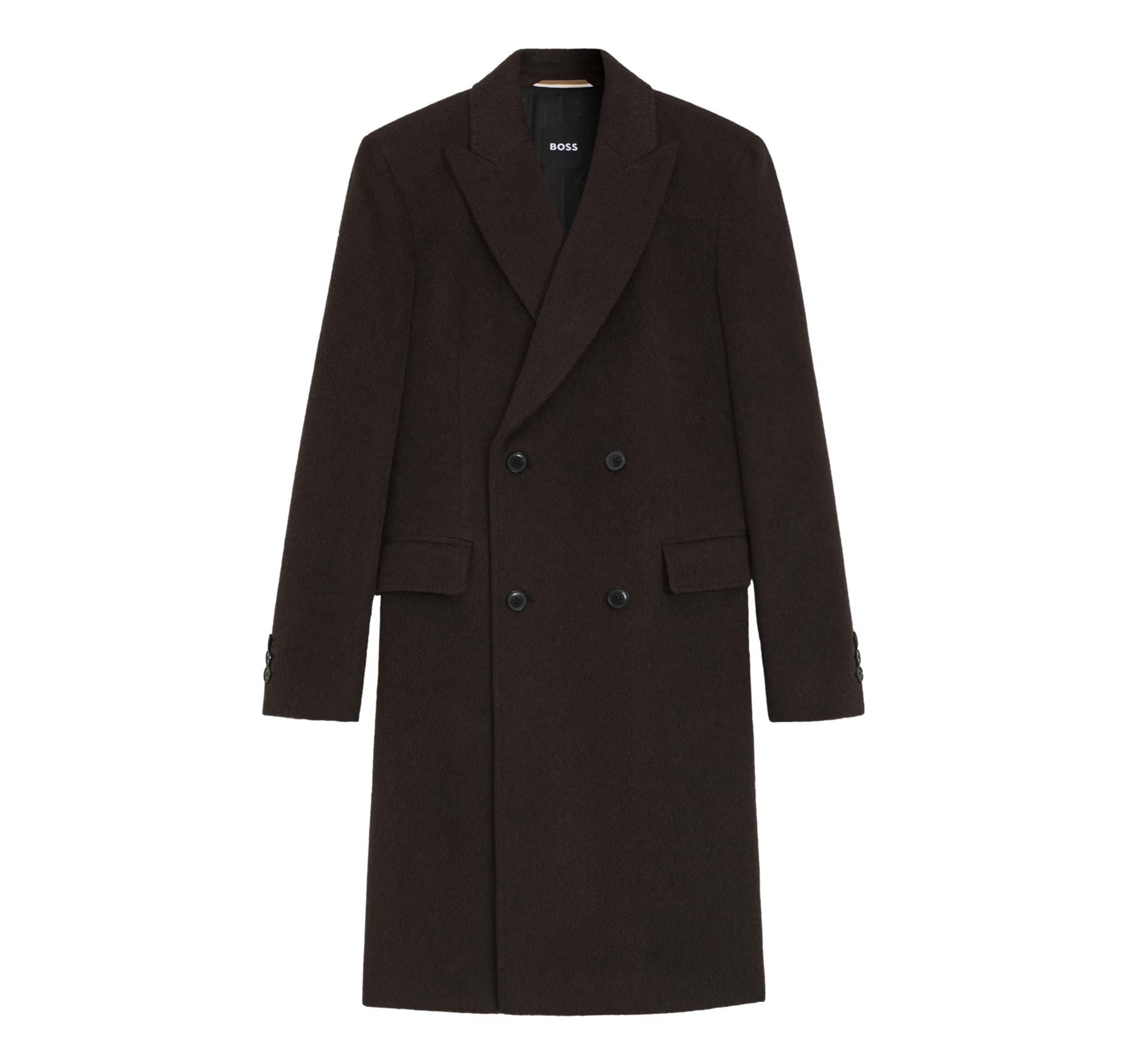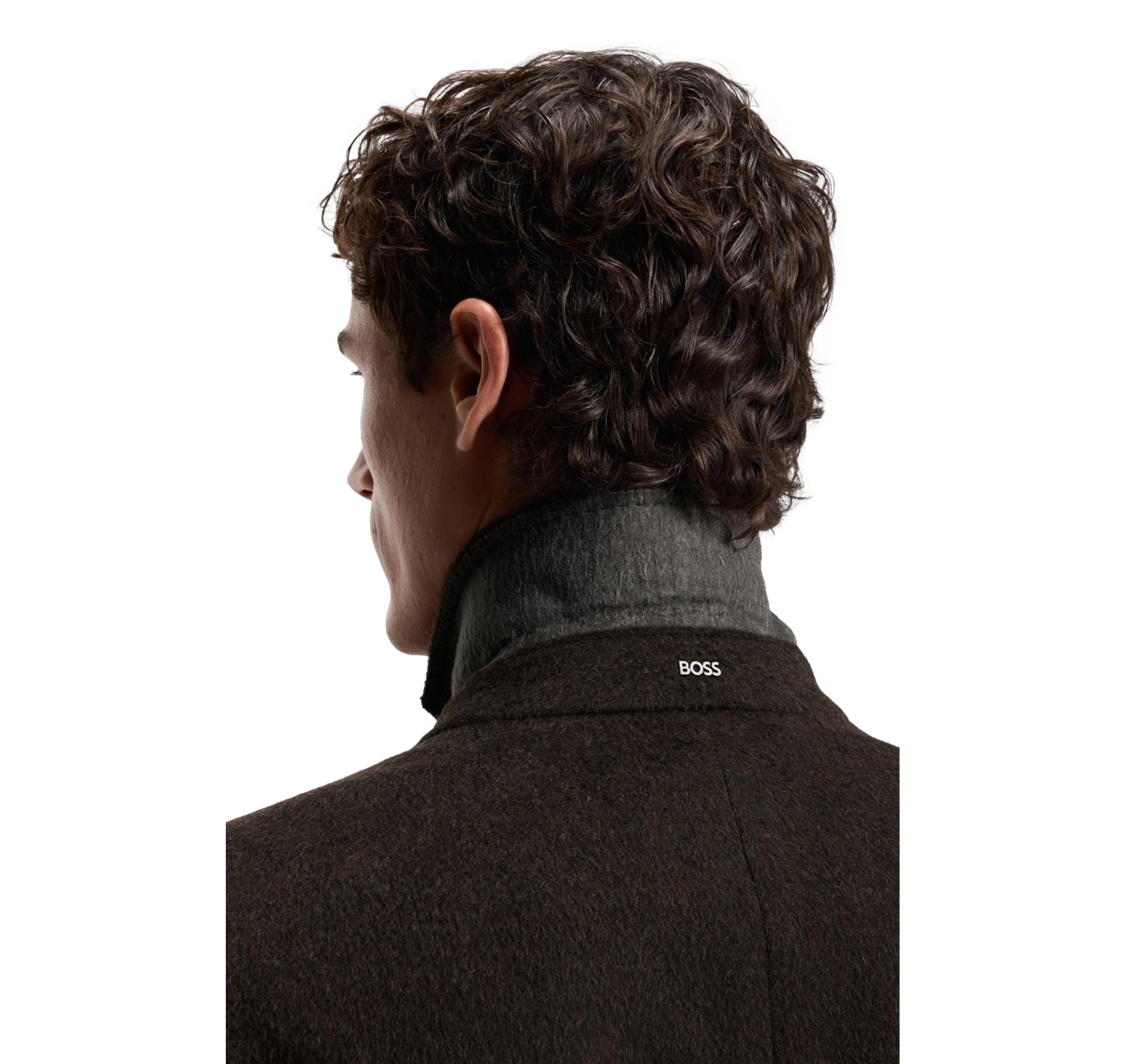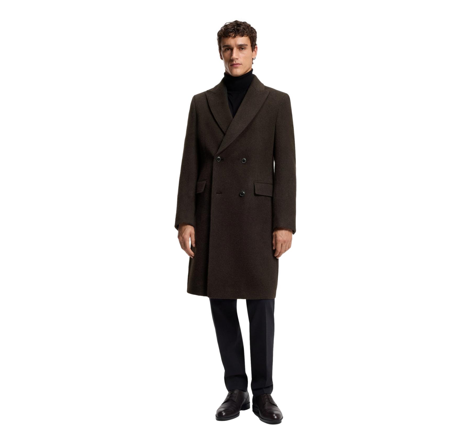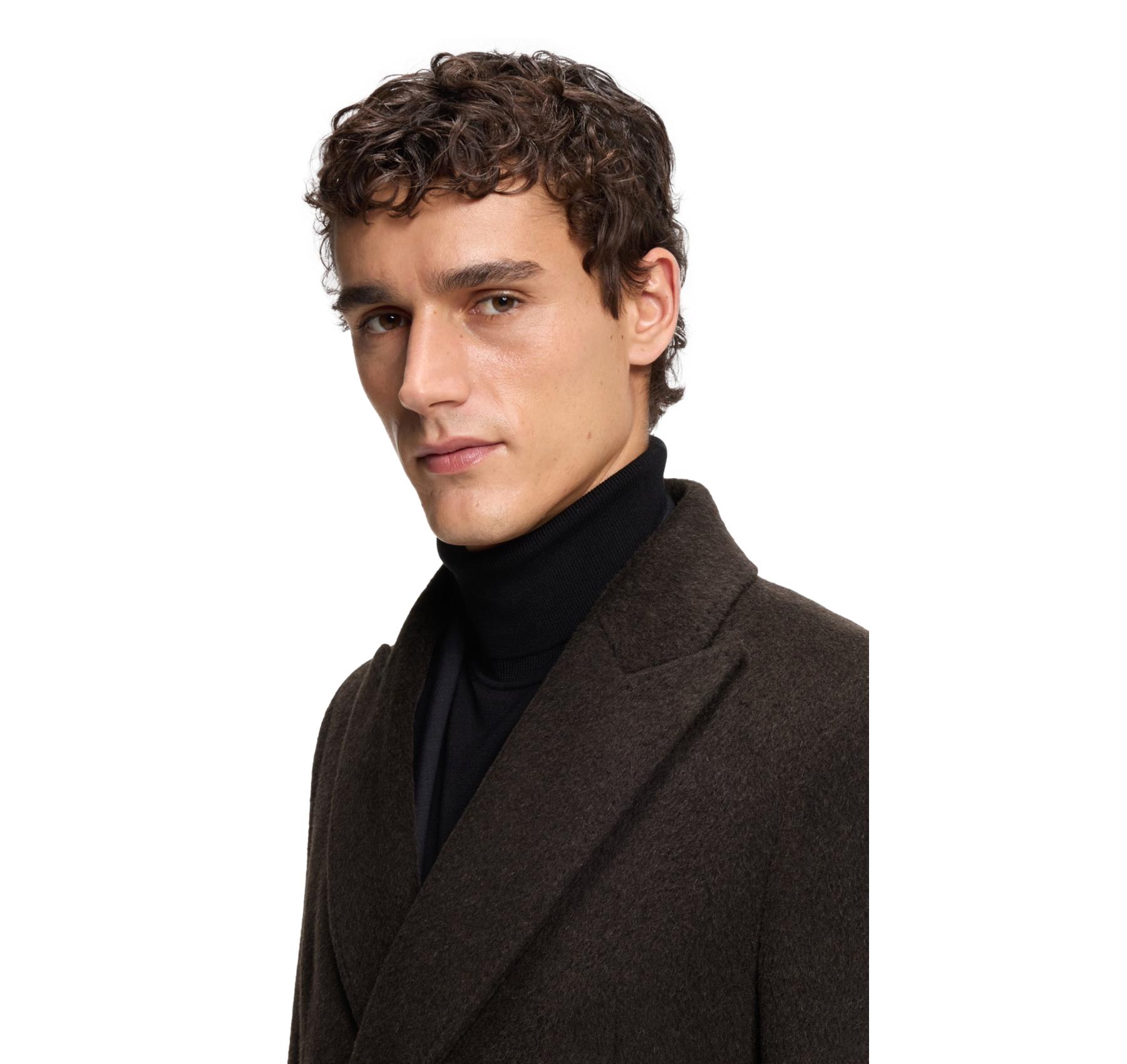 Con revers a lancia classici e chiusura doppiopetto, questo cappotto BOSS Uomo dal taglio aderente è un must formale. Misto lana vergine con un'elevata percentuale di alpaca.