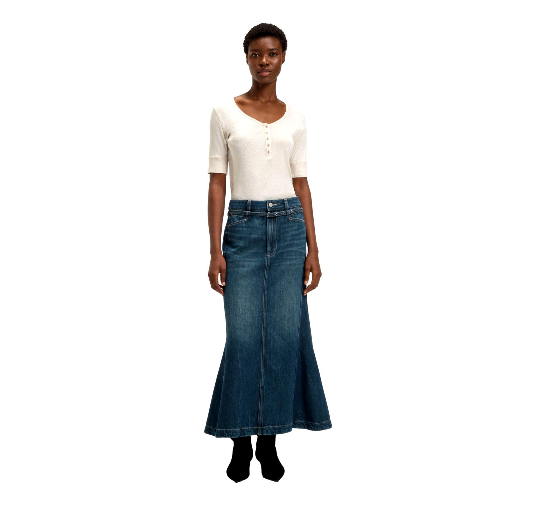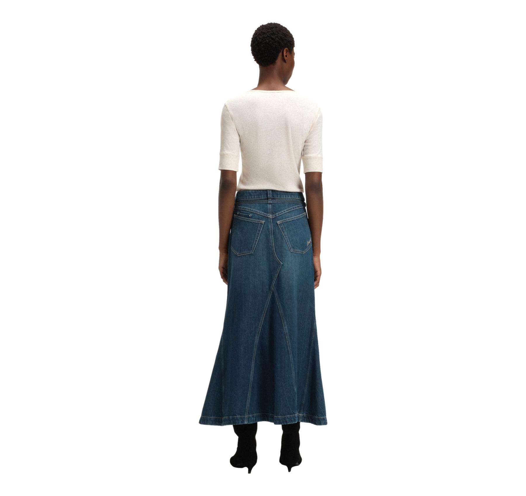 Caratterizzata da lunghezza midi e profilo svasato, questa gonna BOSS Donna crea look casual moderni. Denim blu smeraldo. Dettagli cuciti e cintura rimovibile. Questo prodotto contiene almeno il 60% di materie prime di qualità superiore. Questo prodotto è realizzato per almeno il 60% in cotone proveniente da agricoltura rigenerativa. L'agricoltura rigenerativa dà priorità alla conservazione e al ripristino degli ambienti naturali, con l'obiettivo di migliorare la biodiversità, preservare la qualità dell'acqua e migliorare le condizioni del suolo.