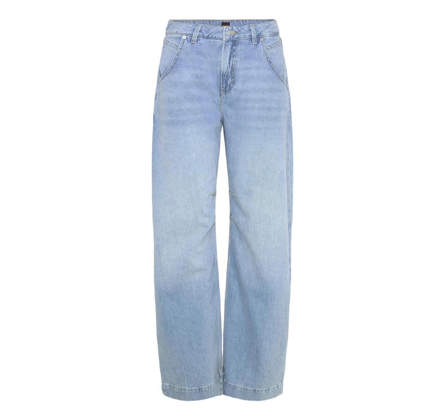 Il modello è completato dal classico design a cinque tasche, dettaglio intramontabile del denim, che garantisce praticità e versatilità. Grazie alla loro vestibilità ampia e al taglio moderno, questi jeans sono perfetti per creare outfit casual chic con t-shirt, camicie o maglieria.