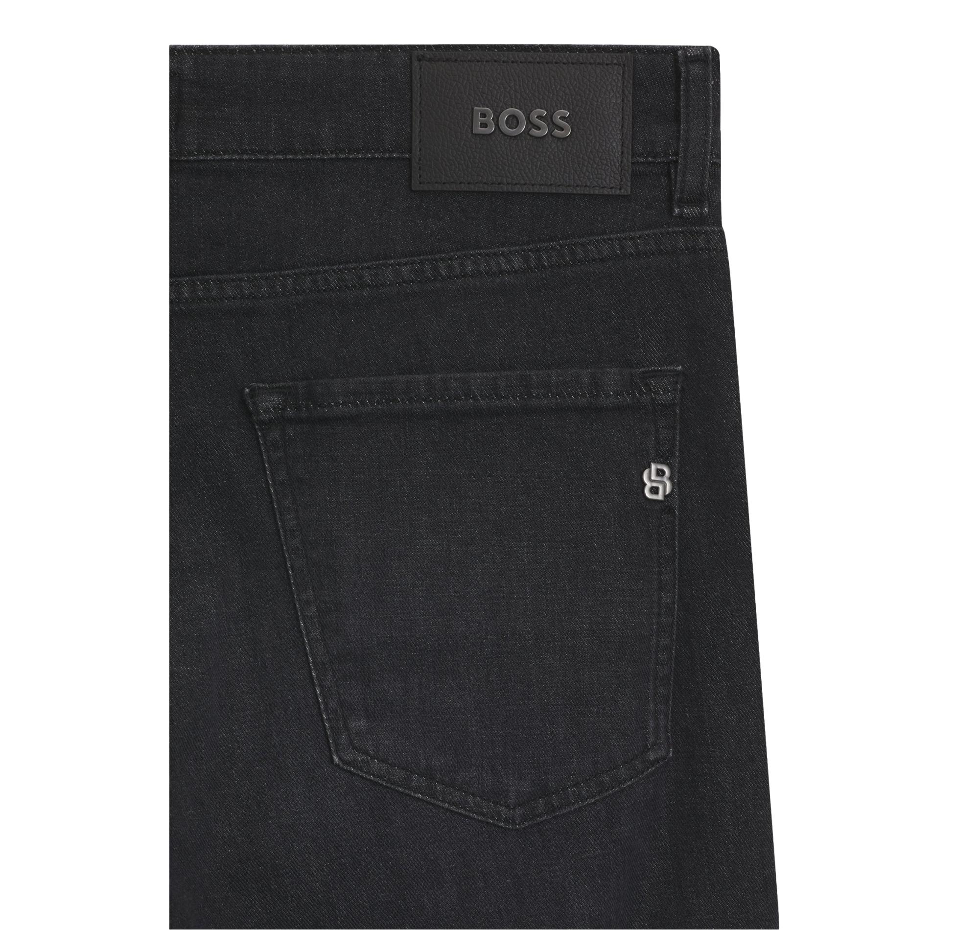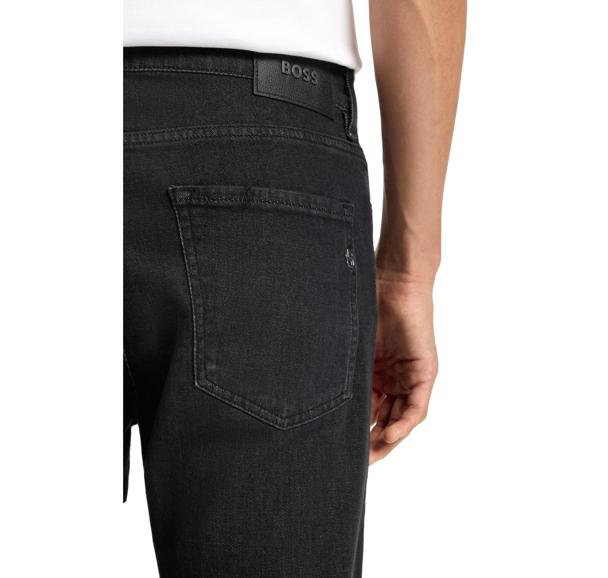 Caratterizzati da una silhouette aderente in denim italiano, questi jeans BOSS Uomo offrono una sensazione morbidissima al tatto per un comfort casual. Tonalità nera sbiadita.
