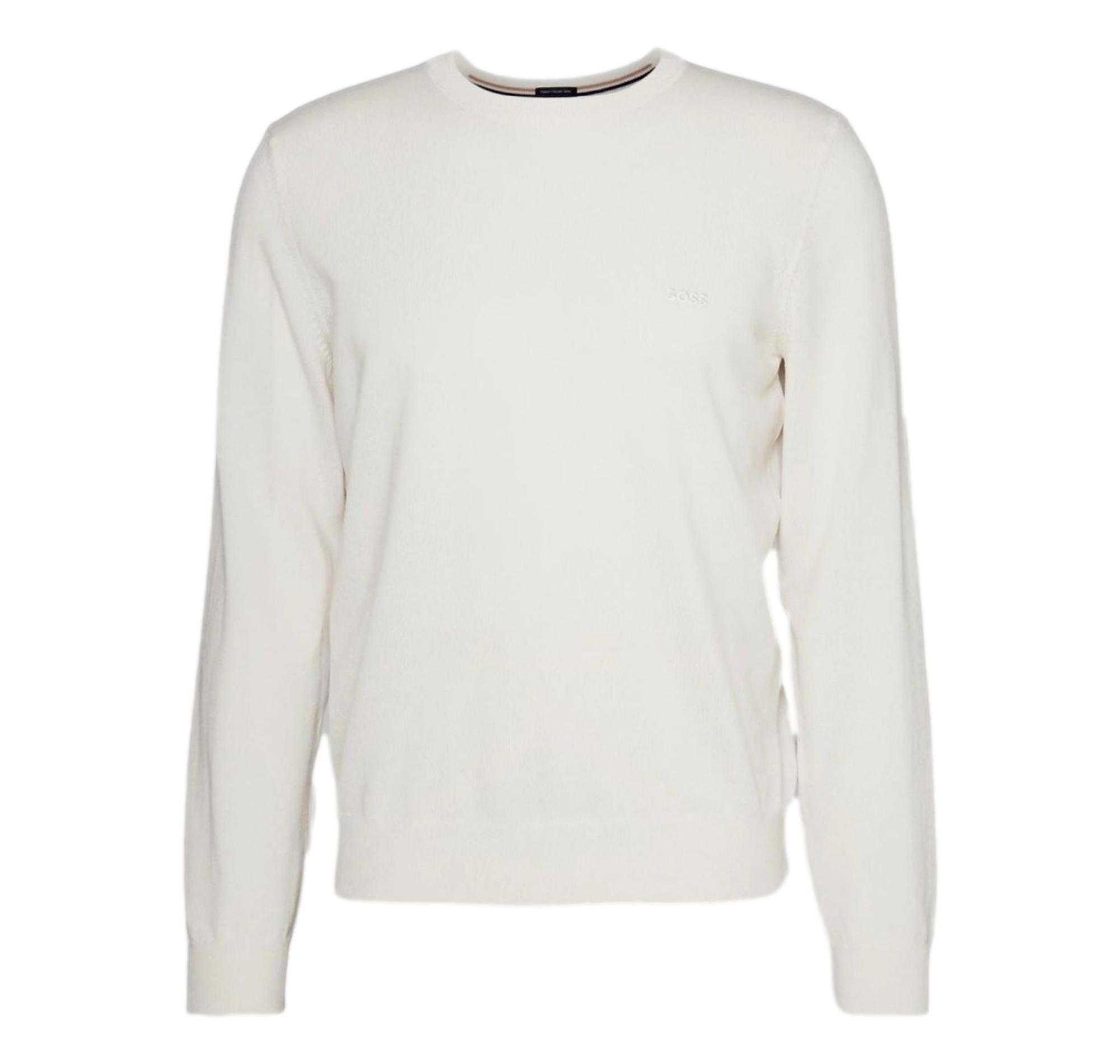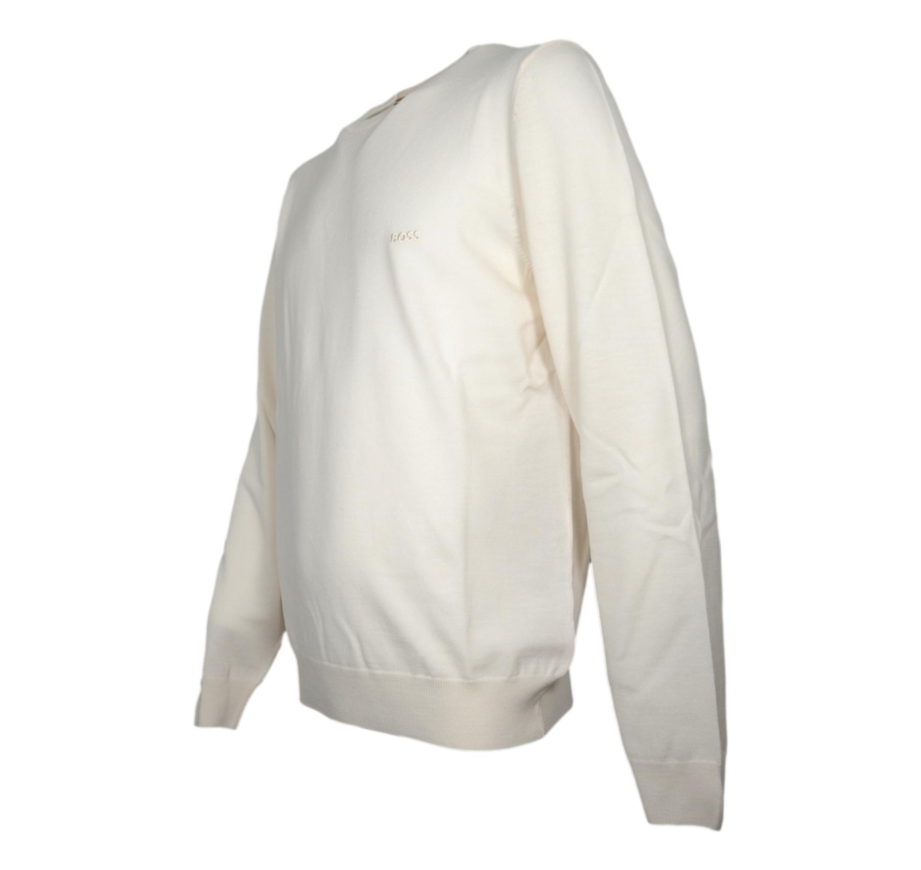 BOSS Maglione Uomo Regular Fit In Lana Vergine Con Logo Ricamato Botto 50476364 Colore Bianco