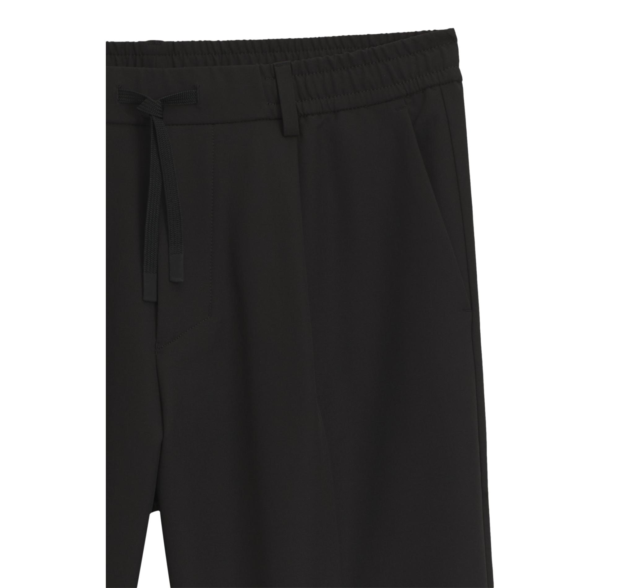Il design è arricchito da moderne pieghe frontali che conferiscono un tocco sartoriale contemporaneo, mentre la vita semi-elasticizzata aumenta il comfort e l’adattabilità.