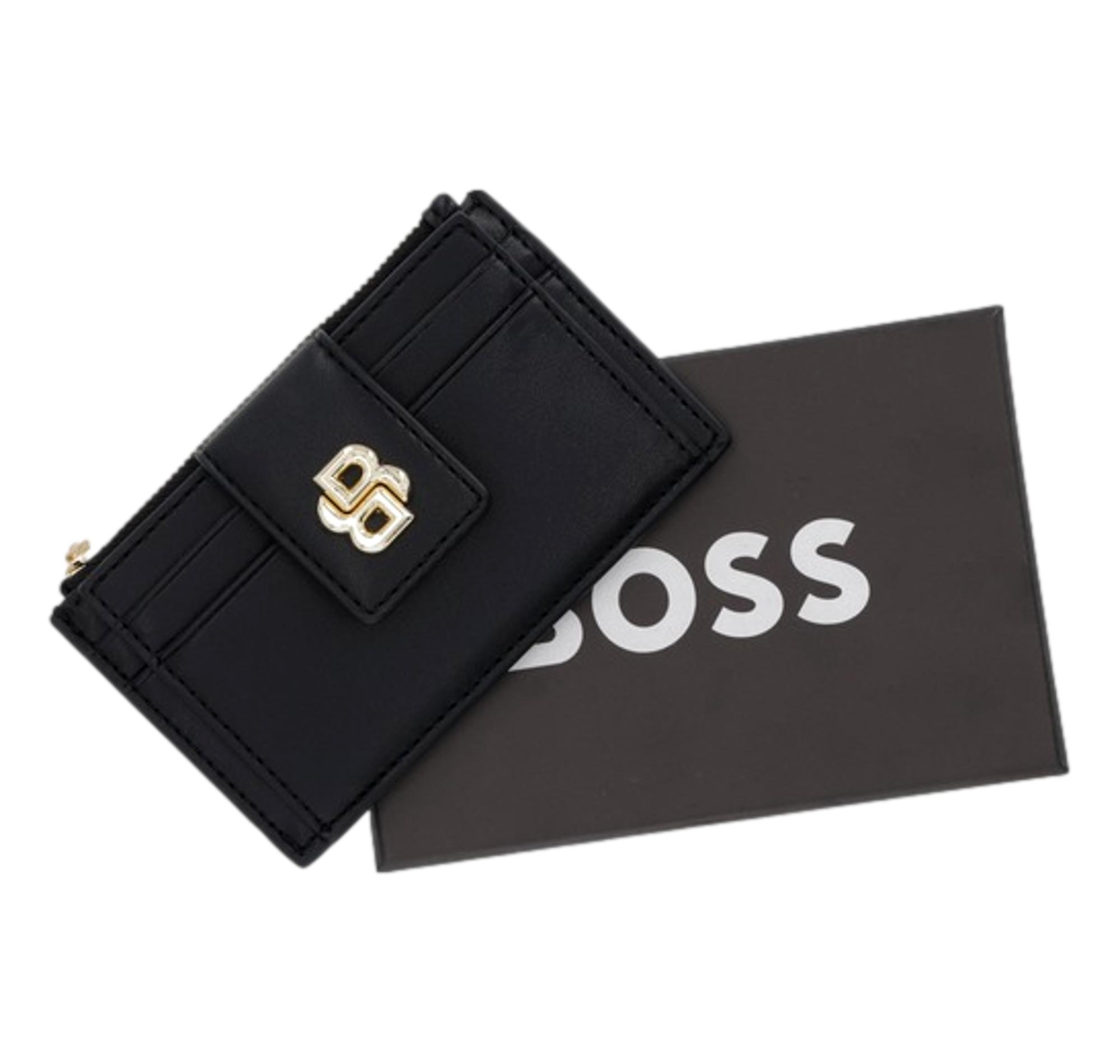 Portacarte in pelle nera con logo dorato – Eleganza e funzionalità firmate BB