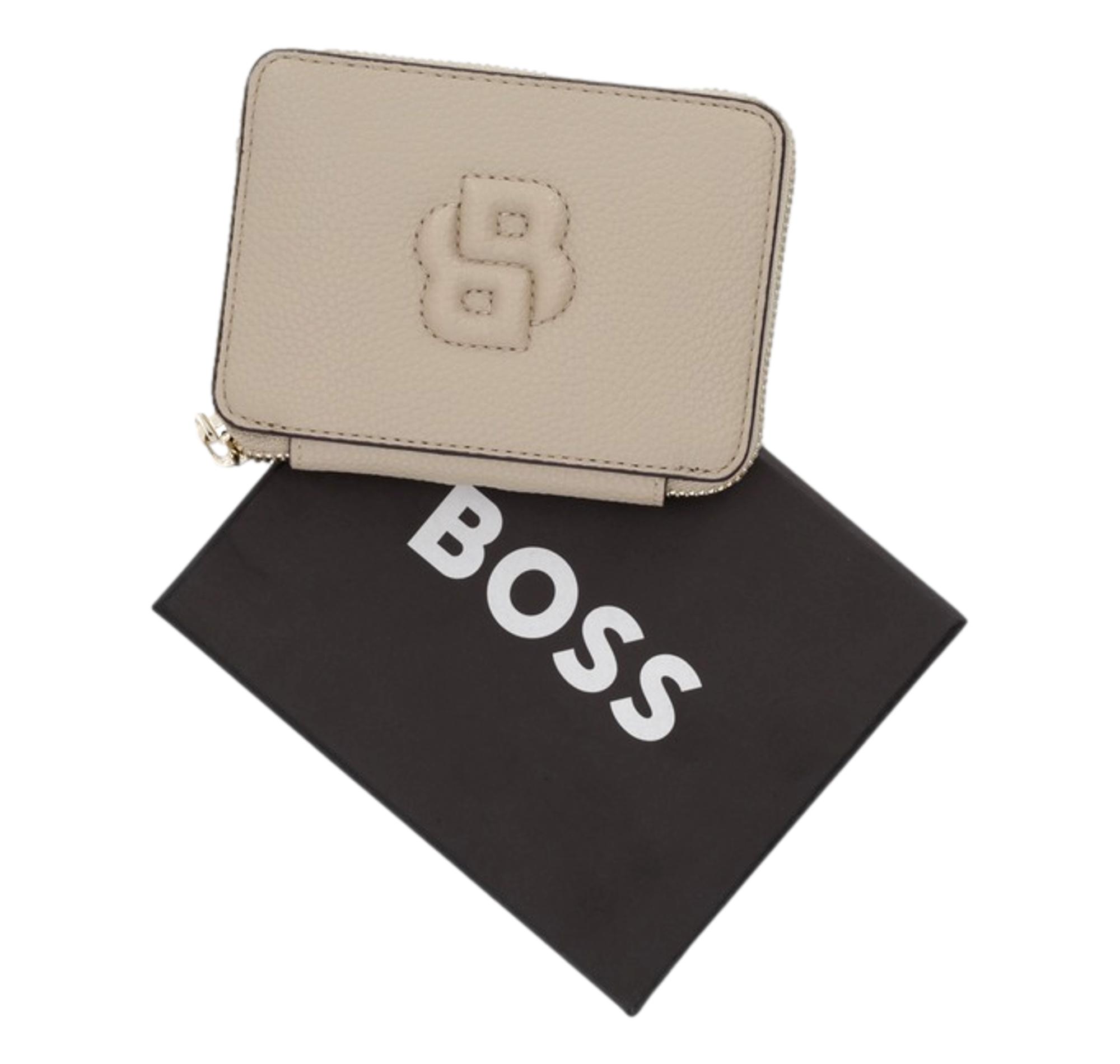 Caratterizzato da un originale monogramma Double B in rilievo, questo portafoglio piccolo BOSS Donna è realizzato in tessuto sintetico rivestito con lavorazione martellata. Chiusura con zip. Il tessuto sintetico rivestito, chiamato in alcuni casi similpelle, è progettato per assomigliare alla vera pelle e presenta un effetto rivestito opaco, lucido, liscio o lavorato.