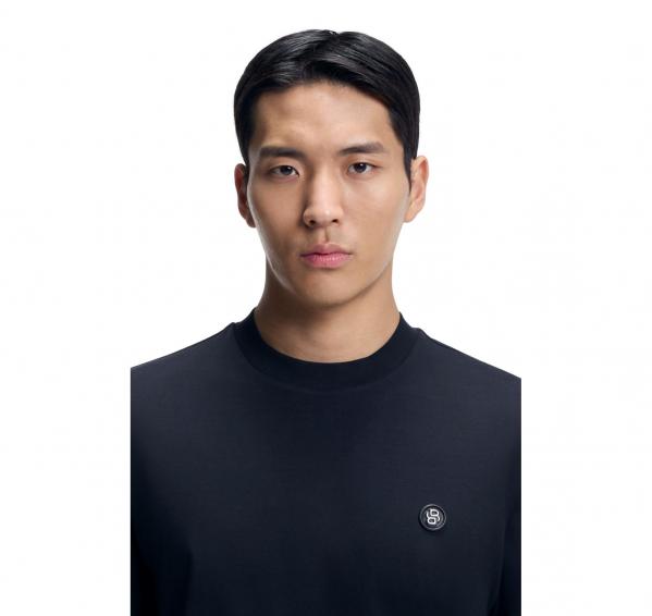 Realizzata in cotone con finitura mercerizzata ultra morbida, offre una sensazione piacevole sulla pelle e una maggiore luminosità del tessuto. Il modello è impreziosito dal badge monogramma Double B in metallo, dettaglio distintivo che dona al capo un tocco moderno ed esclusivo.