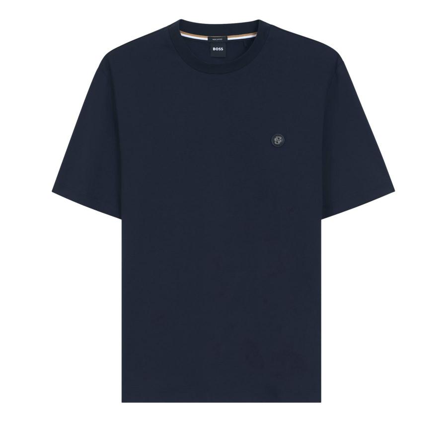 Elegante e contemporanea, questa T-shirt uomo BOSS blu scuro in cotone mercerizzato unisce comfort e stile in un design essenziale ma raffinato.