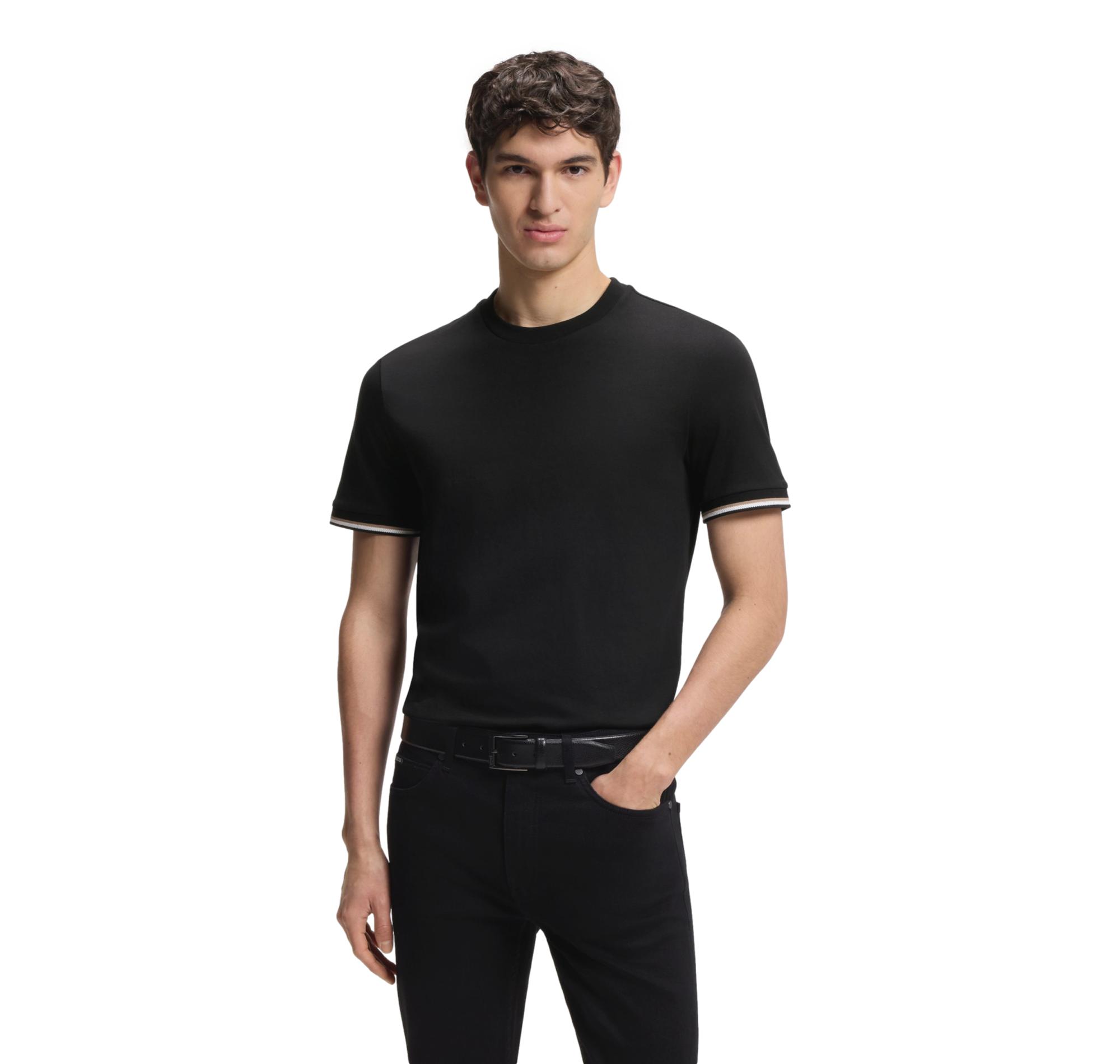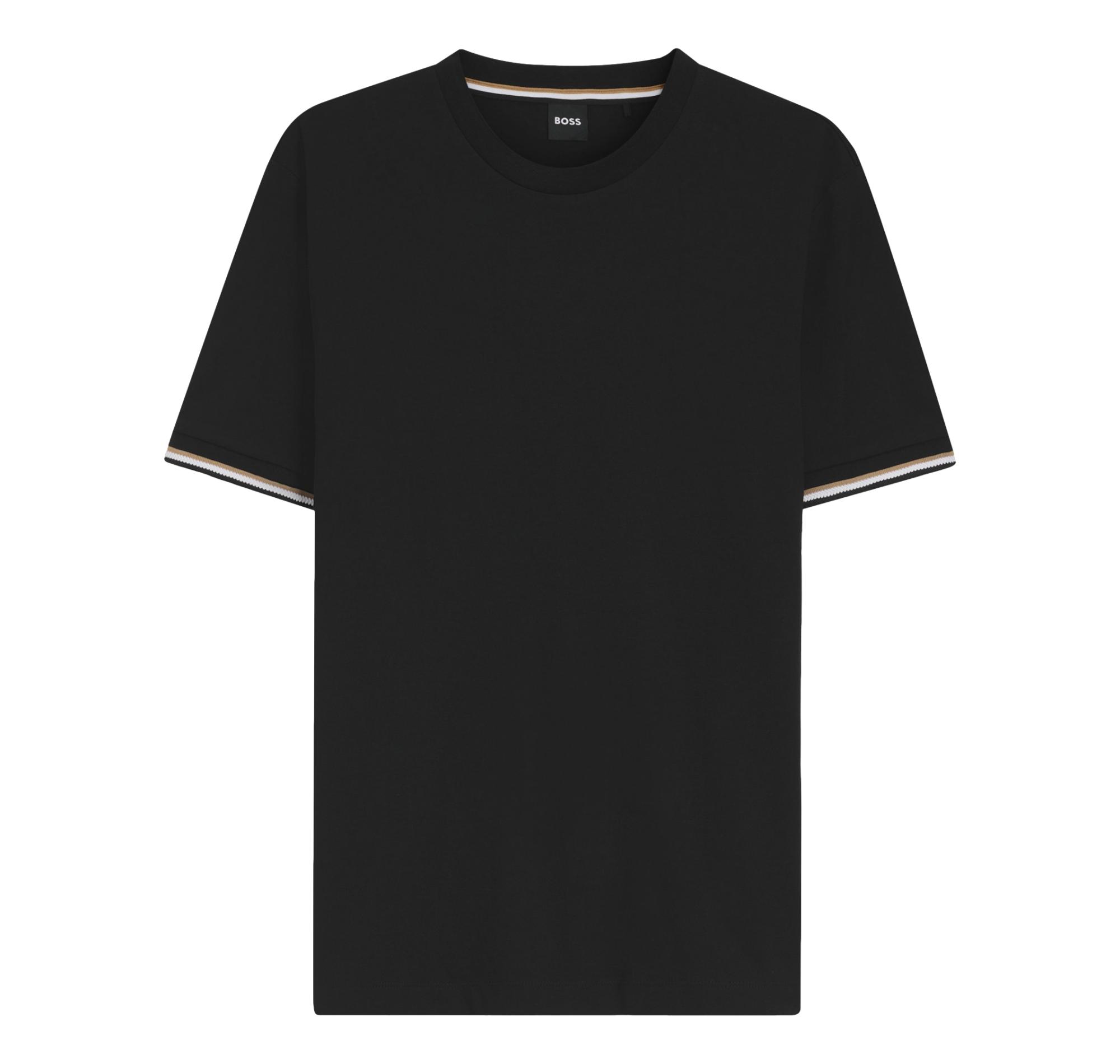 Il design minimal è arricchito dalle iconiche righe tipiche del marchio sul fondo delle maniche, dettaglio distintivo che richiama lo stile elegante e riconoscibile del brand BOSS.