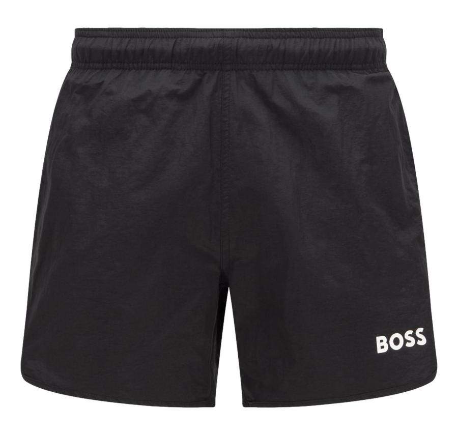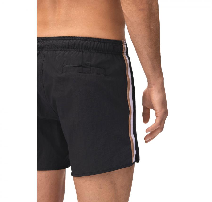 Moderni boxer da mare BOSS con fodera interna integrale. Caratterizzati dalle righe tipiche del marchio sulle cuciture laterali, questi boxer da mare presentano una stampa con logo BOSS a contrasto per uno stile originale.
