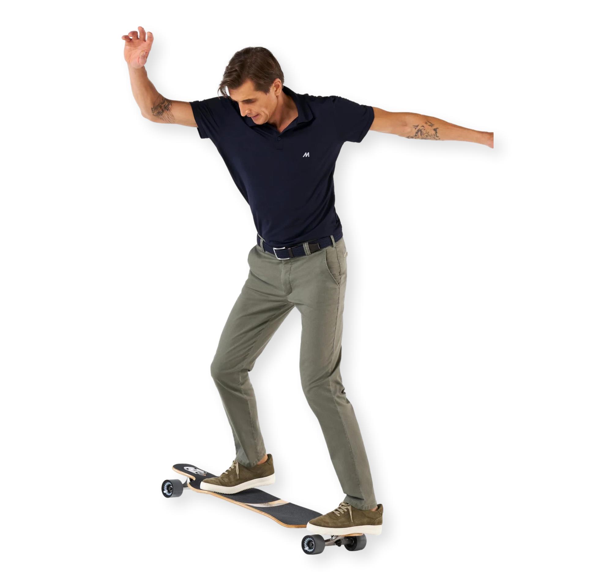 Tecnologia, comfort e stile contemporaneo si incontrano in questi pantaloni chino uomo MEYER ACTIVE, progettati per garantire performance elevate durante tutta la giornata.