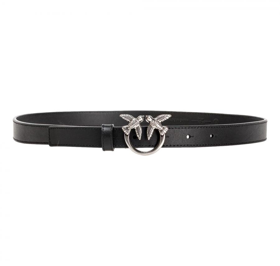 PINKO Cintura Donna Love Berry Simply Belt H2 Fibbia Argento Colore Nero
