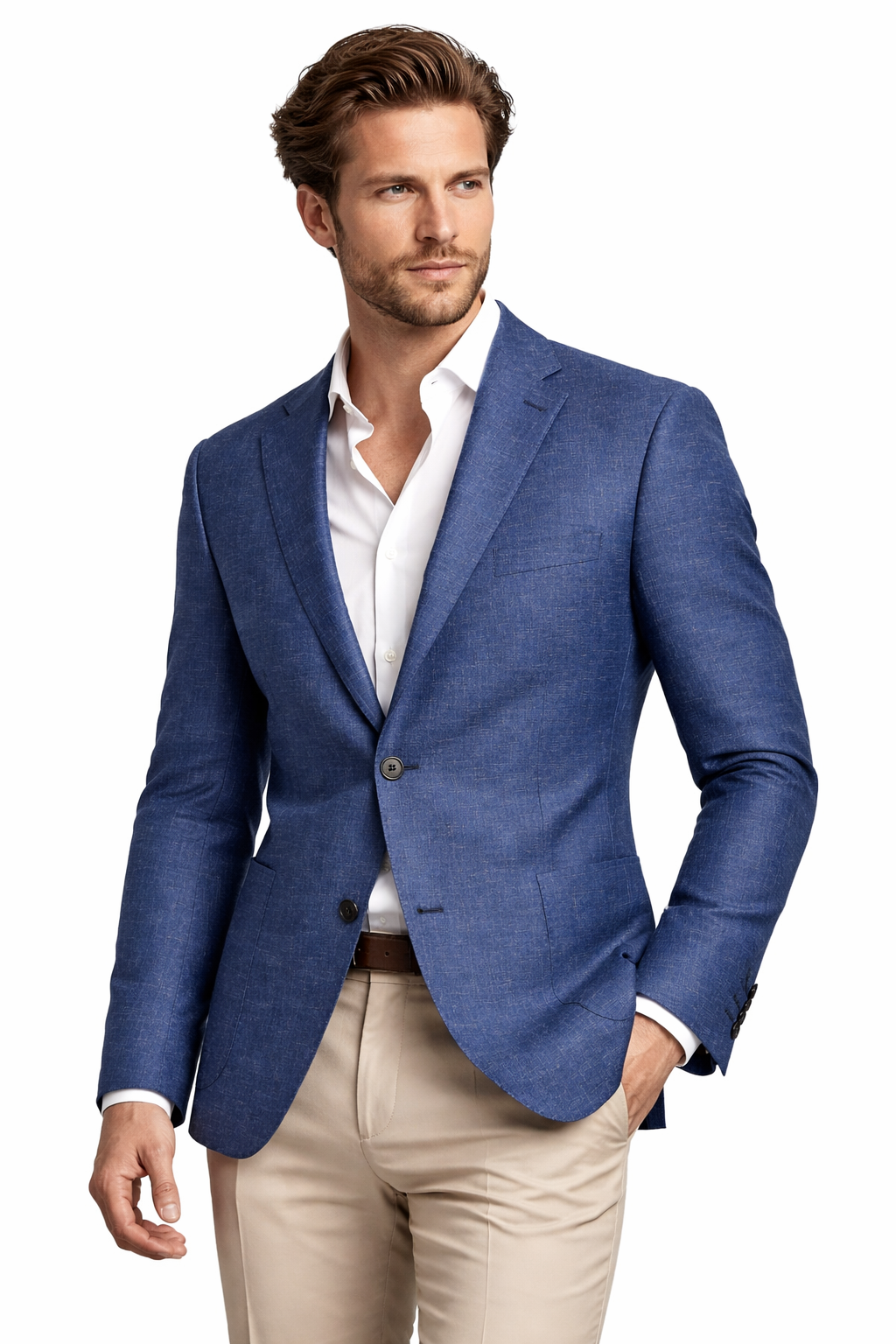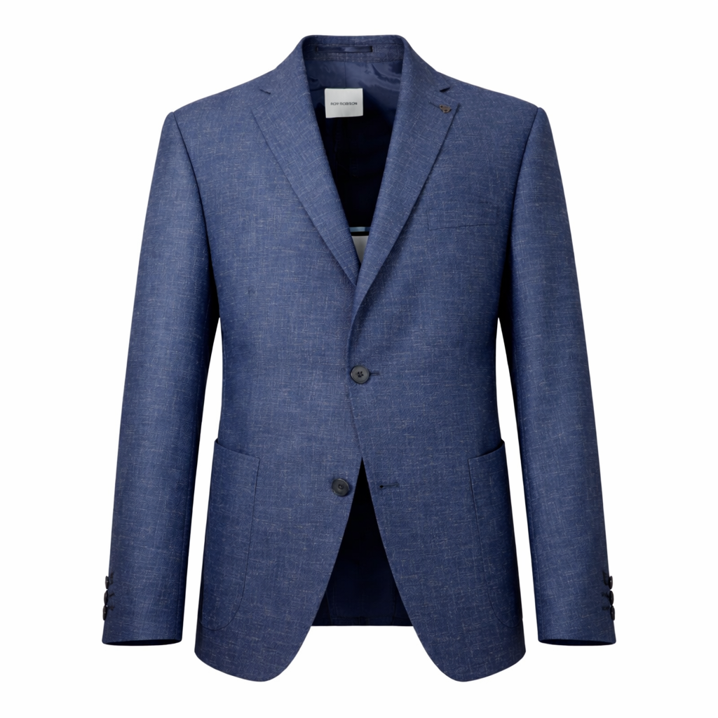 La giacca uomo ROY ROBSON 14551 è un blazer contemporaneo dal carattere versatile, realizzato in tessuto lavorato effetto melange che dona profondità e raffinatezza al colore blu.
