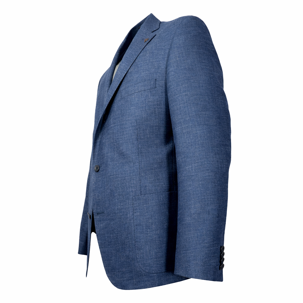Le tasche a toppa frontali aggiungono un tocco moderno e informale, mentre i due spacchi posteriori assicurano comfort e libertà di movimento. La morbida imbottitura sulle spalle mantiene una linea strutturata ma non rigida.